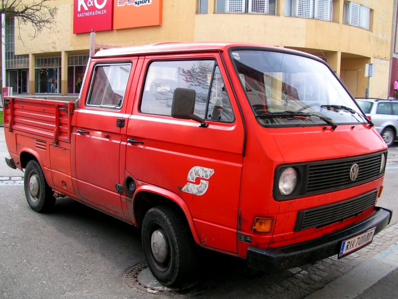 T3 "Doppelkabiner" trägt immer noch den "Pflatsch" an den Seitentüren, obwohl schon im Privatbesitz; 080421