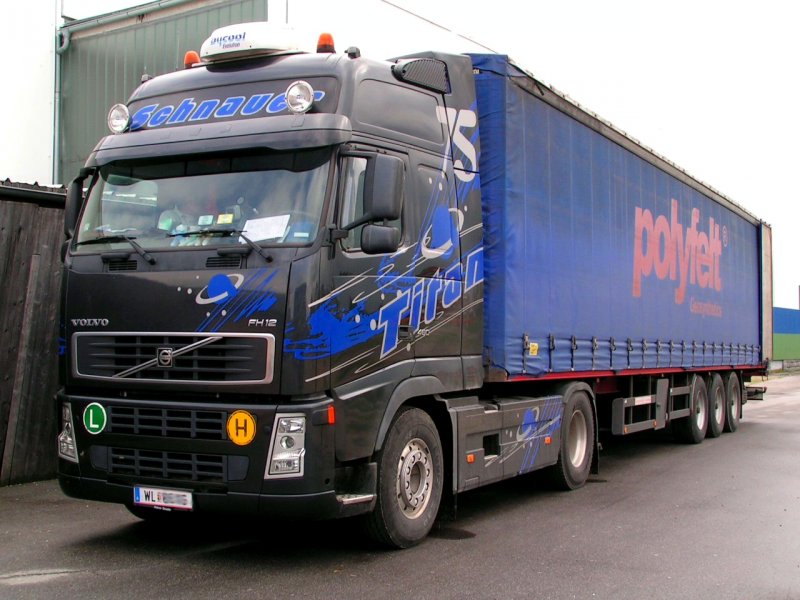 VOLVO FH12-430 nimmt seine Route durch das Stadtgebiet von Ried i.I.; 080422