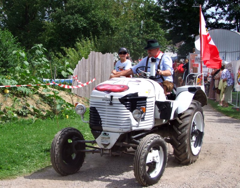 Steyr80 wurde ein bisschen "aufgemozzt" und qualmt nun auf der Oldtimerrundfahrt in Münsteuer seine Runden; 080811