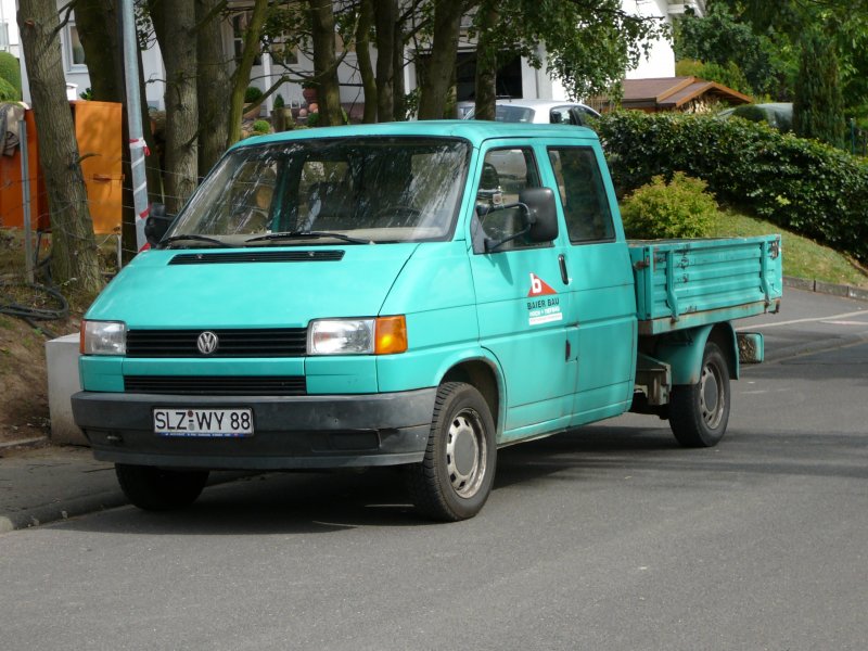 VW T 4 Doppelkabiner mit kurzer Ladepritsche einer regionalen Baufirma, gesehen in 36100 Petersberg - Marbach