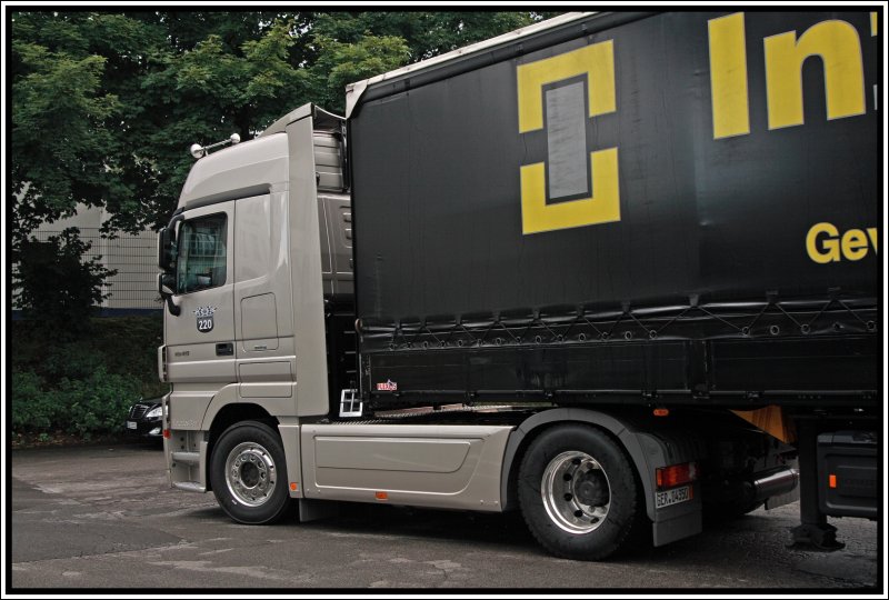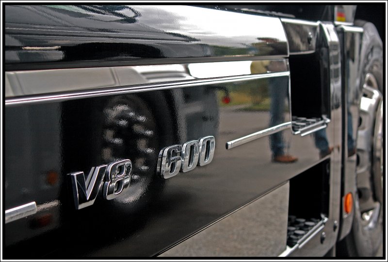 V8 und 600PS Logo glänzen auf dem Actros der JS-Transporte. Schade das man sich solche Logos nicht kaufen kann;-P