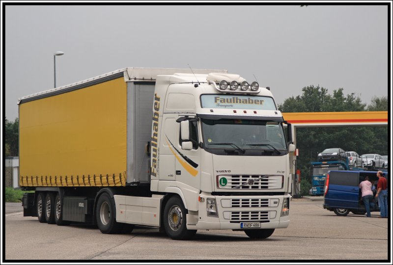 Da is er ja schonwieder: VOLVO FH16 mit R6 Motor und 610 PS der FAULHABER TRANSPORTE auf dem Rasthof Sauerland West. (29.08.2008)