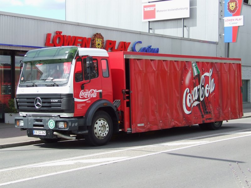 Ein alter Mercedes-Benz MK 1420 (facelift) mit Getränkeaufbau in Tamm (Württ.) am 21.08.2008.