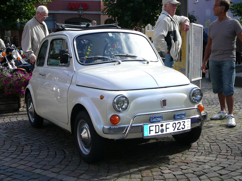 Fiat 500 steht bei der 5. Old- und Youngtimerausstellung in 36088 Hunfeld, 24.08.08