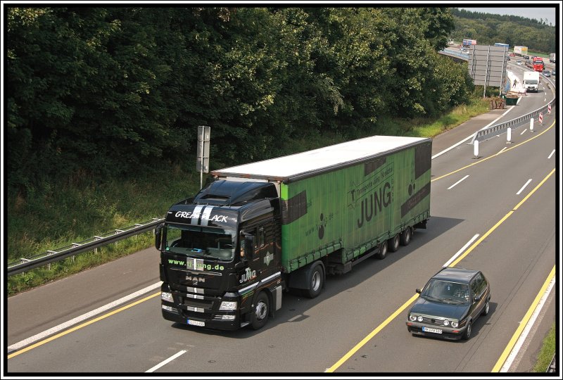 MAN TGX 18.440 der TRANSPORTE JUNG KREUZTAL ist auf dem Weg nach Kreuztal. (21.08.2008)