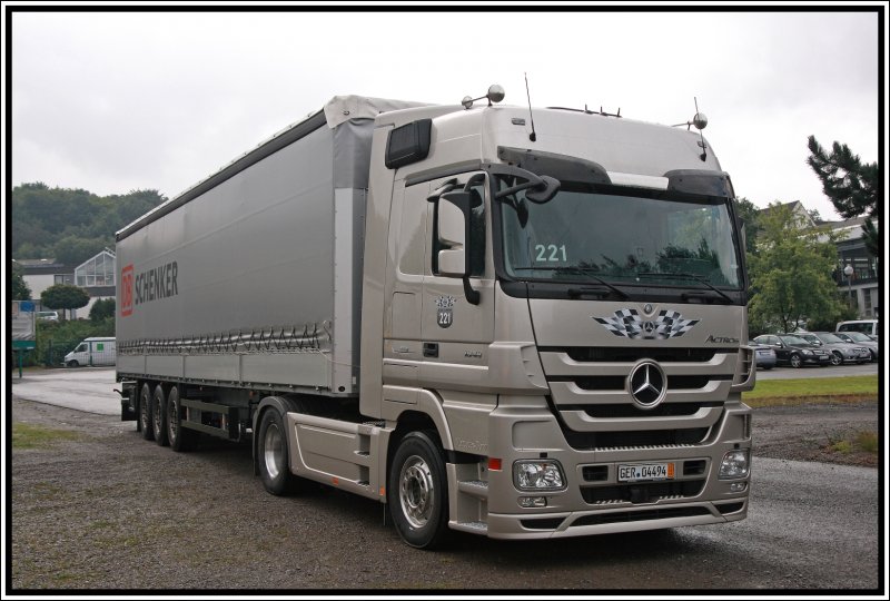 Actros 1860 (600PS) der Js-Transporte aus Plettenberg. Zusätzlich wurden oben und unten Zusatzscheinwerfer angebaut. (23.08.2008)