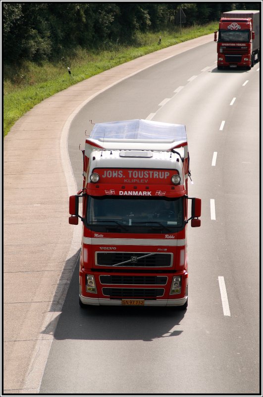 VOLVO FH12 ist bei Lüdenscheid Richtung Süden unterwegs. (21.08.2008)