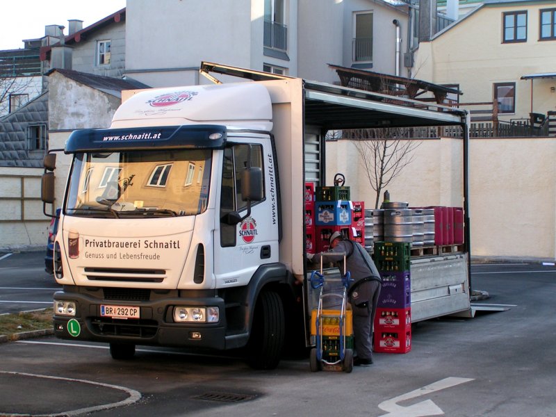 IVECO-140E21; einer kleinen Innviertler Brauerei beim Zustelldienst am Sylvestertag in Ried i.I.;081231