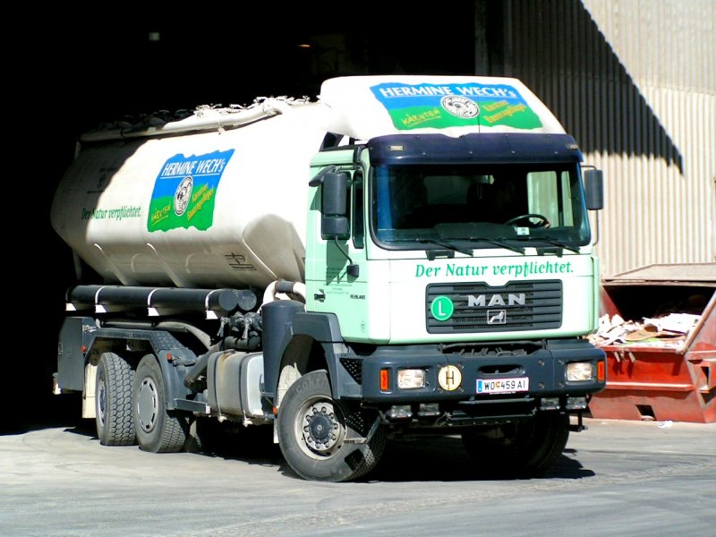 MAN, verlässt gerade ein Mischfutterwerk, und ist am Weg zu einem Landwirt; 080220