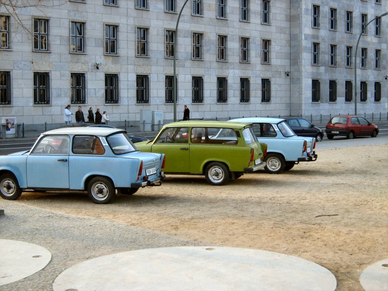 Trabis in Berlin, hier gleich zwei davon - kleine Ausstellung in Berlin am Fesselballon in Mitte, Februar 2008