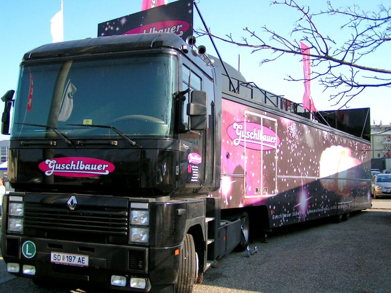 Scania 124L-360 einer Wiener Spedition ist am Messegelände Ried i.I. abgestellt; 080210