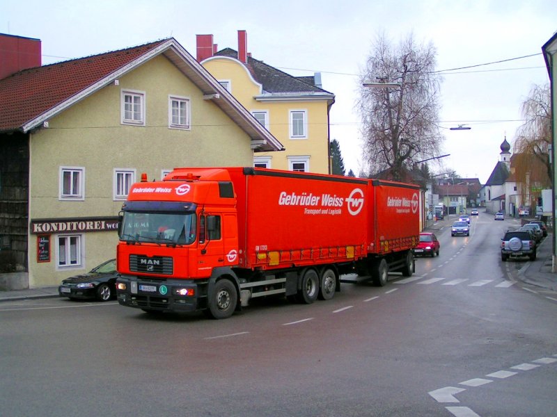 MAN-Hängerzug durchfährt das Stadtgebiet von RIED i.I.; 080102