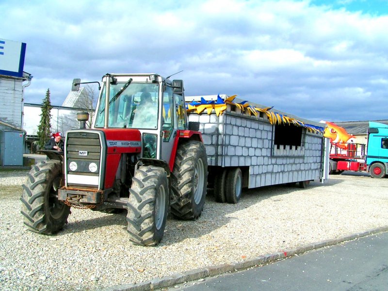 MasseyFerguson 1004T mit einem Faschingsumzugswagen; 080120