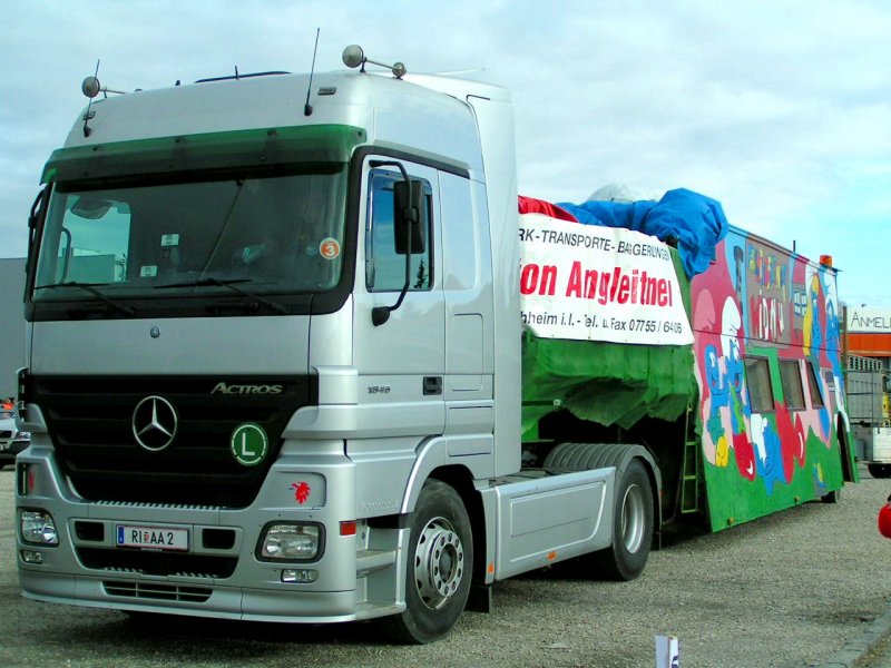 Mercedes-Actros1848; am Volksfestgelände für den Faschingsumzug aufgerüstet; Ried i.I.080120
