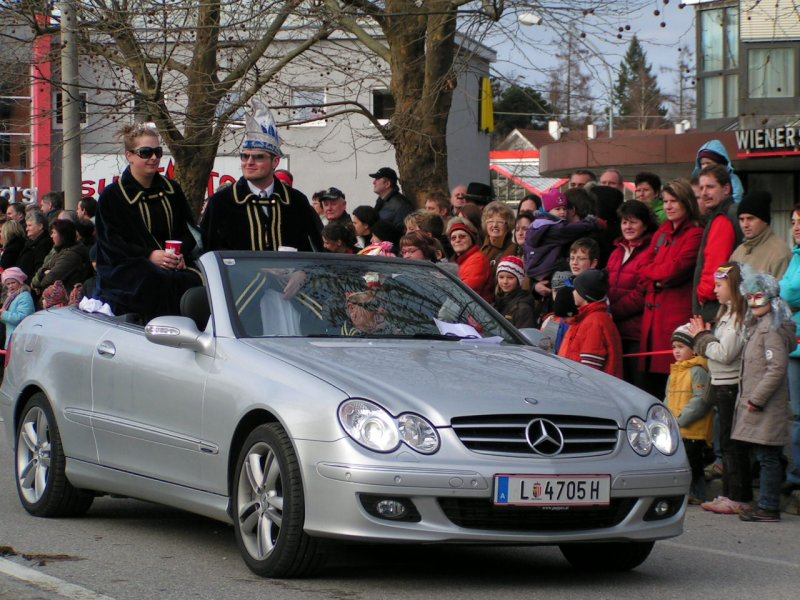 Mercedes-Cabrio mit Faschingsprinzenpaar; Ried i.I. 080120