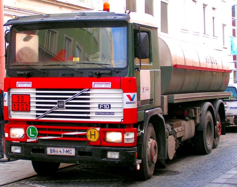 VOLVO F10 bei der Zustellung von Heizöl im Stadtgebiet Ried i.I.; 080102