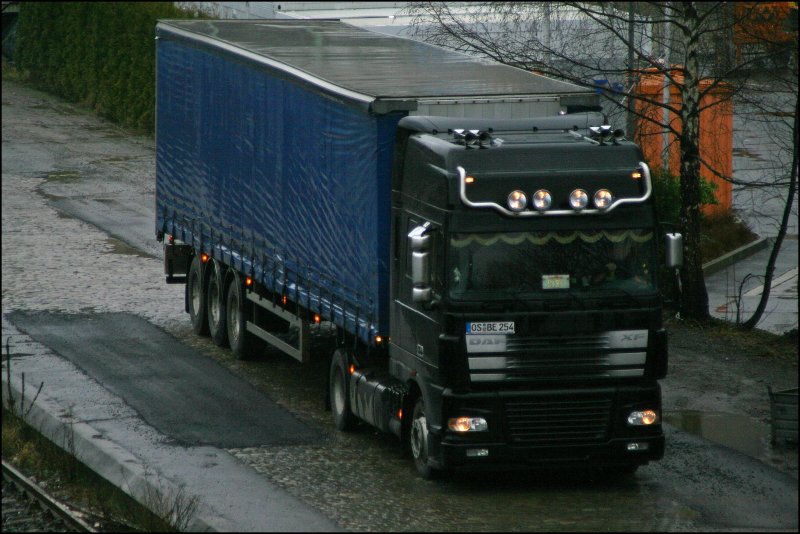 Während des Aufenthaltes in Werdohl ist mir dieser DAF XF vor die Linse gefahren. Persönlich gefallen mir die Lkw´s besser die mehr Beleuchtung und Zubehör besitzen. Voralem die Holländer oder auch Italiener verwenden mehr Beleuchtung etc. (21.01.08)