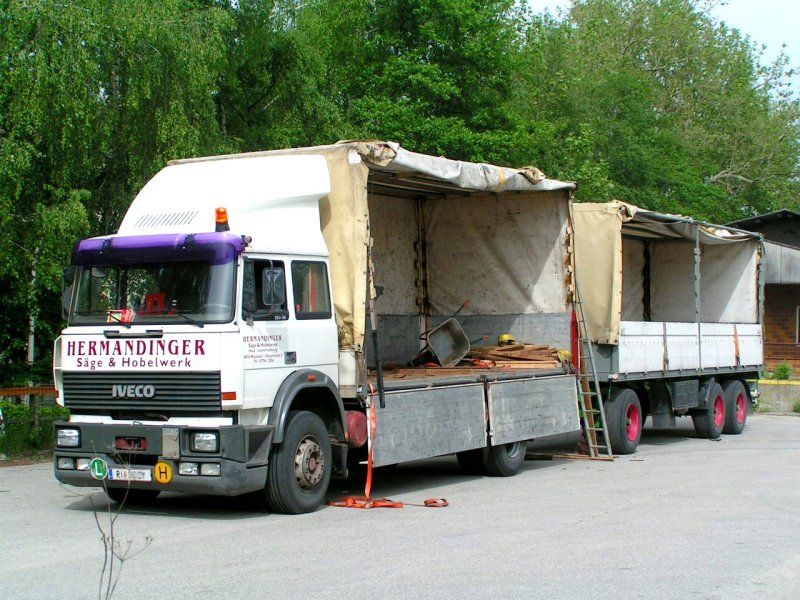 IVECO-Hängerzug steht zum Abtransport von angefallener Holzrinde bereit; 080526