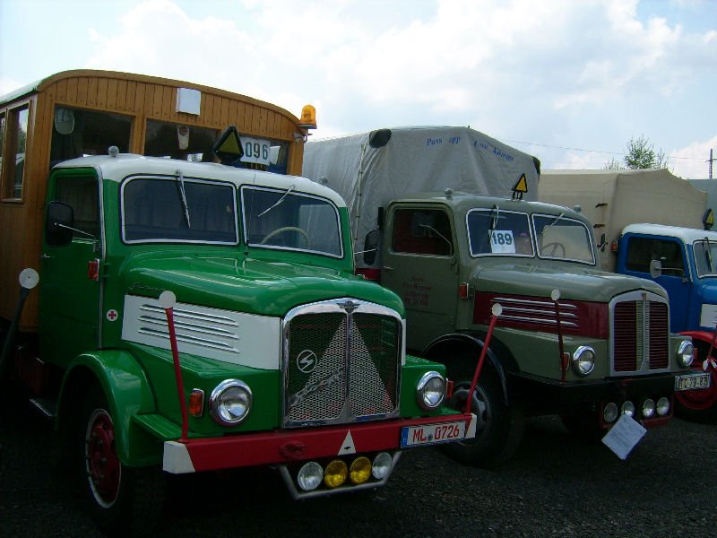 G5 Werkstattwagen,H6 und S4000 Pritsche in den Farben einer Spedition beim Oldtimertreffen in Hartmannsdorf