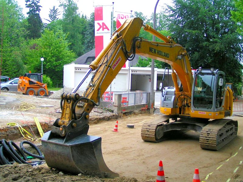 "Verlängertes Wochenende" für New-Holland auf einer Straßenbaustelle in Ried i.I.; 080523