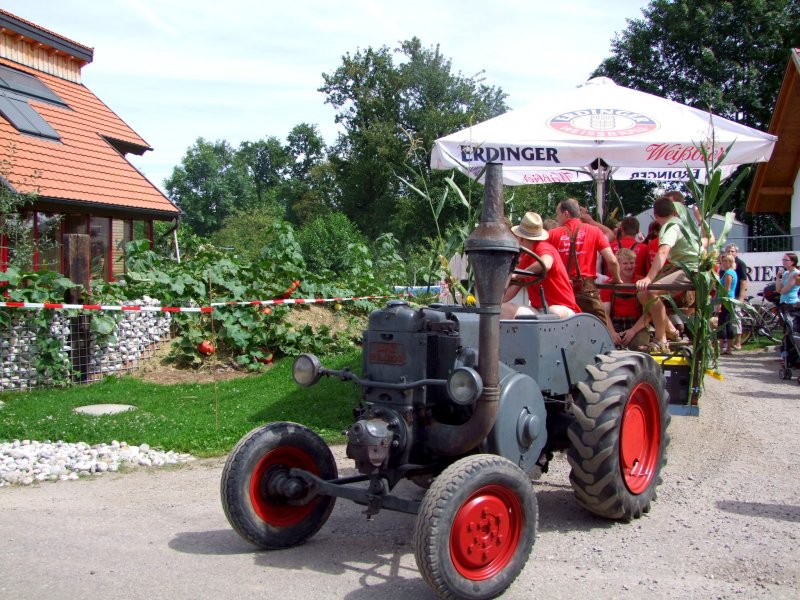 LANZ-BULLDOG zieht einen "Gastgarten" anlässlich einer Oldtimerauffahrt in Antiesenhofen; 080810