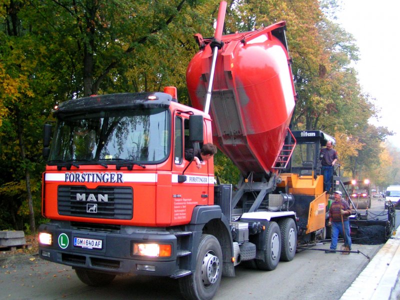 MAN(33.414)beschickt einen Asphaltfertiger in Ried i.I.; 081010