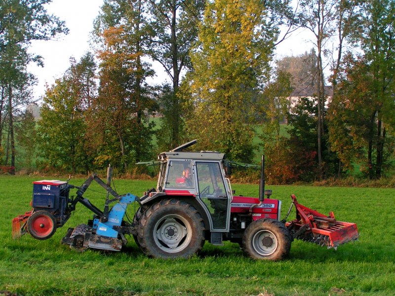 MF382 mit "Front-Kreiselegge" und mechanischer Sämaschine; 081010