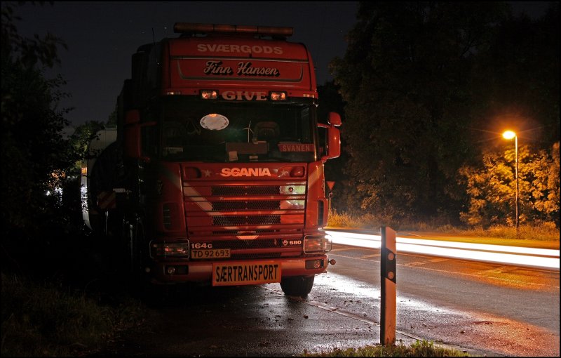 Am Abend wurde das Wetter etwas besser und die Transporter konnten auch ohne Regen aufgenommen werden. Im Bild der SCANIA 164G V8 580.