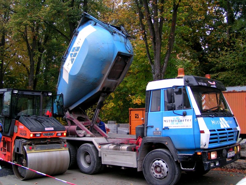 STEYR(32S36) liefert Asphalt zu einer Straßenbaustelle in Ried i.I.;081010