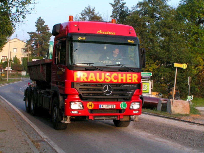 Der Mercedes Actros 1851 V8 von RICHTER Mineralöl wurde auf dem Firmengelände aufgenommen. (Aufgenommen von der Straße). (11.10.2008)