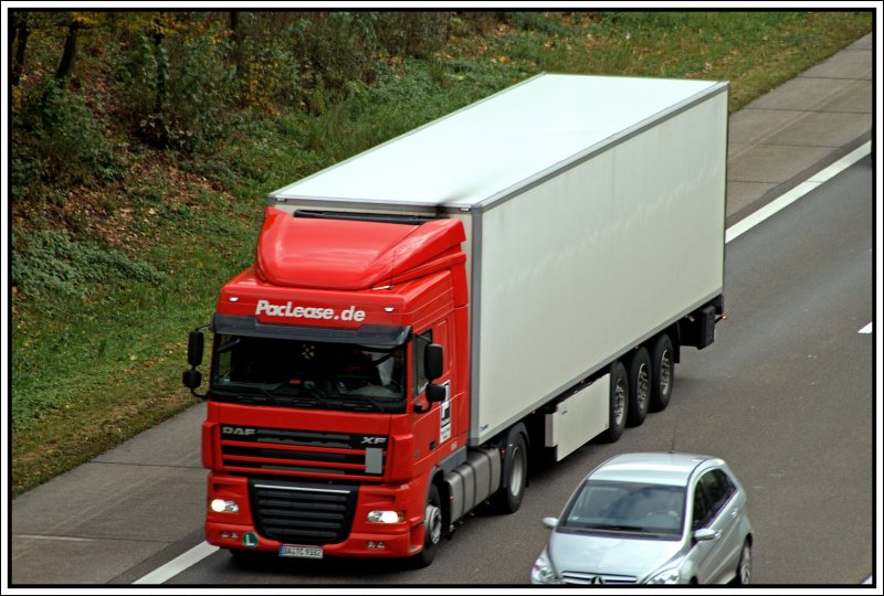 Ein leichter Mitzieher... DAF XF105.460SC "SpaceCab" von PacLease und Kühlauflieger. (17.10.2008)
