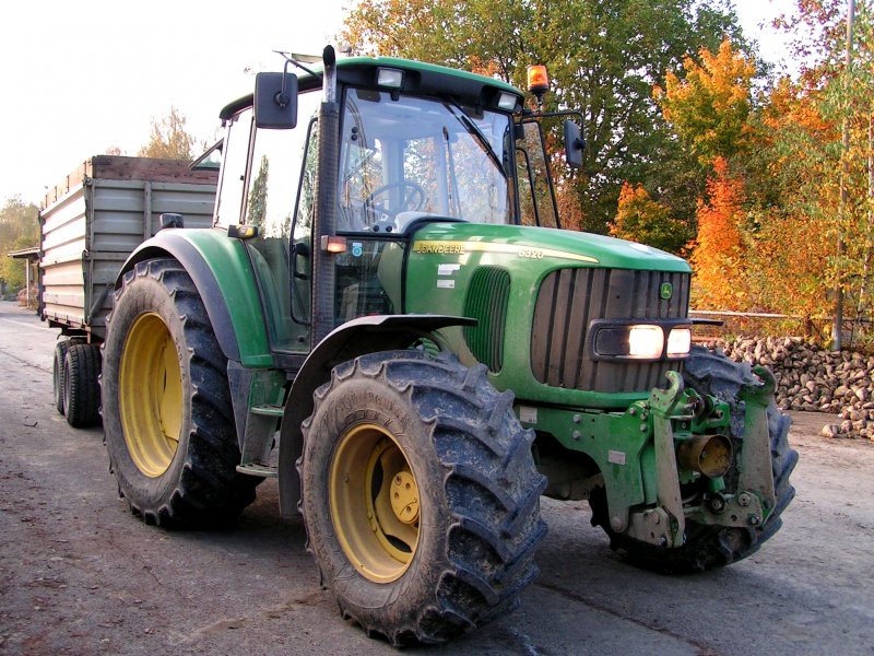 JOHNDEERE-6320 bei der Anlieferung von Zuckerrüben am Bhf. RIED i.I.; 081016