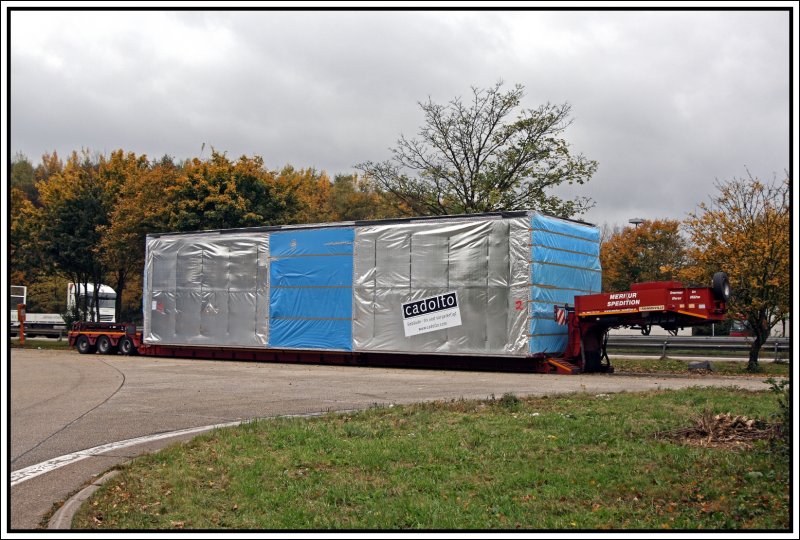 MERKUR: Hier sieht man den Schwertransport in seiner ganzen länge. Hier aus einer anderen Perspektive. (15.10.2008)