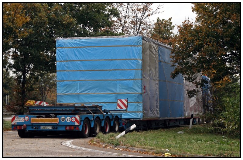 Portaitaufnahme des Schwerlastauflieger und der Ladung. (15.10.2008)
