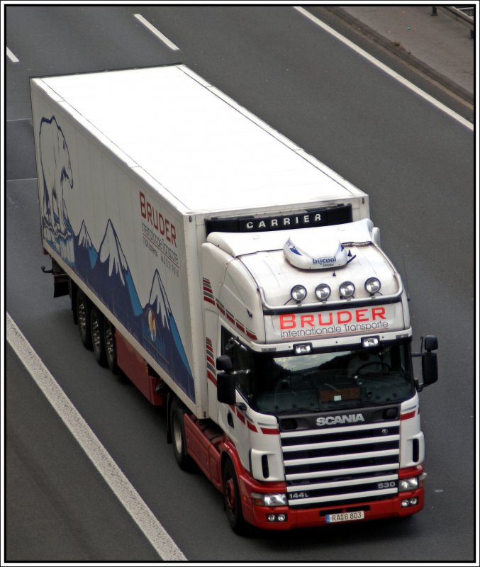 SCANIA 144L 530 der BRUDER Transporte ist in Richtung Süden unterwegs. (17.10.2008)