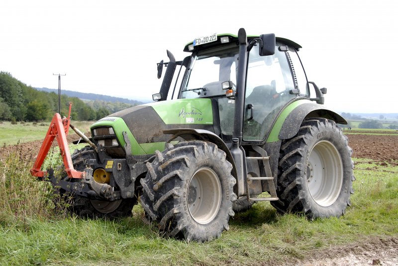 Deutz Agotron 128 als Zaungast anl. des Leistungspflügens in 36100 Petersberg - Böckels am 13.09.2008. Veranstalter war neben dem Landkreis Fulda der Kreisbauernverband Fulda-Hünfeld e. V. und der Landesbetrieb Landwirtschaft Hessen
