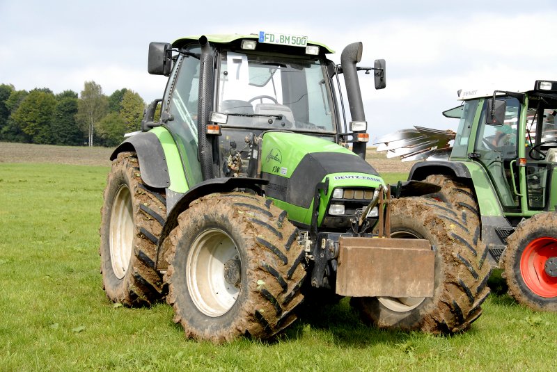 Deutz Agotron 130 anl. des Leistungspflügens in 36100 Petersberg - Böckels am 13.09.2008. Veranstalter war neben dem Landkreis Fulda der Kreisbauernverband Fulda-Hünfeld e. V. und der Landesbetrieb Landwirtschaft Hessen. Der Fahrer dieses Agotron 130 belegte den 2. Platz im 4-Scharpflügen.