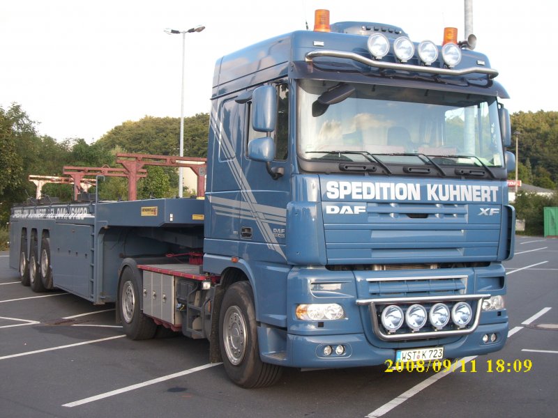 Ein parkender DAF-Schwerlasttransporter am Abend vom 11.09.2008 in Bergen/Rügen.