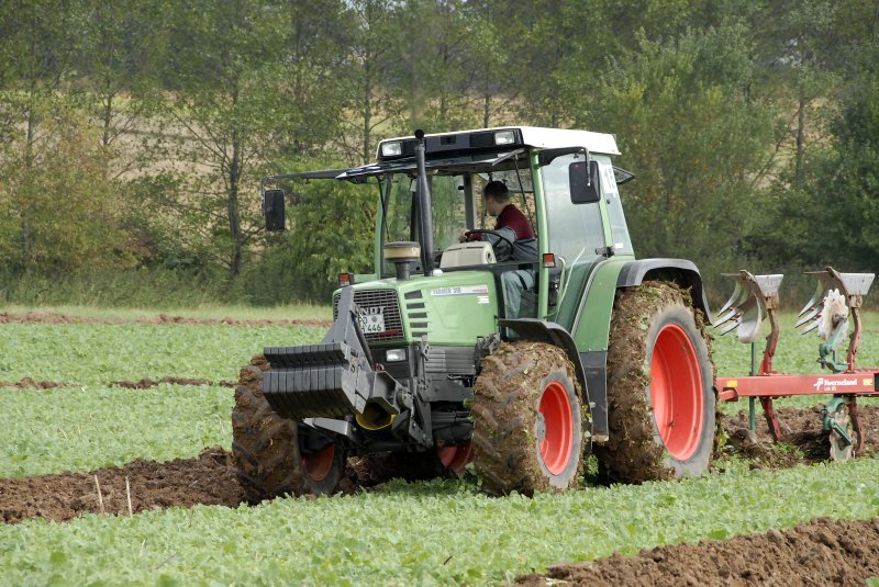 Fendt Farmer 310 zieht seine Bahn beim Leistungspflügen in 36100 Petersberg - Böckels am 13.09.2008. Veranstalter war neben dem Landkreis Fulda der Kreisbauernverband Fulda-Hünfeld e. V. und der Landesbetrieb Landwirtschaft Hessen.