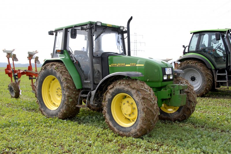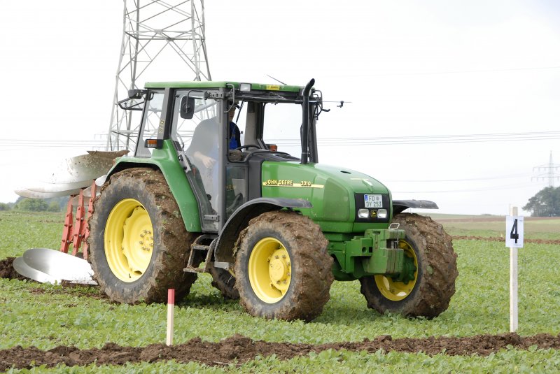 John Deere 3310 beim Leistungspflügen in 36100 Petersberg - Böckels am 13.09.2008. Veranstalter war neben dem Landkreis Fulda der Kreisbauernverband Fulda-Hünfeld e. V. und der Landesbetrieb Landwirtschaft Hessen.