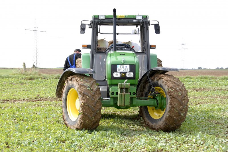 John Deere 3310 steht bereit zum Leistungspflügen am 13.09.2008 in 36100 Petersberg - Böckels. Veranstalter war neben dem Landkreis Fulda der Kreisbauernverband Fulda-Hünfeld e. V. und der Landesbetrieb Landwirtschaft Hessen.