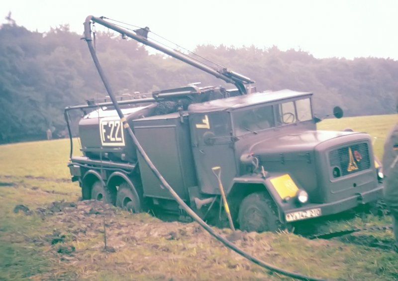 Magirus Flugfeld-Tankwagen, Heeresflieger, hat sich im feuchten Erdreich festgefahren - 1965.