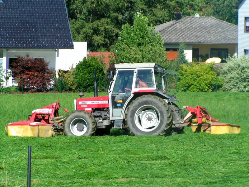 MF382 verrichtet mit zwei Mähwerken den Grasschnitt; 080818