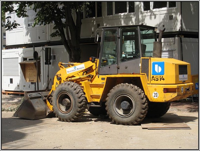 Am 08.06.2008 (ein Sonntag) fanden im Düsseldorfer Medienhafen Asphaltarbeiten statt. Dabei war auch dieser Asphaltverdichter des Herstellers ABG (Allgemeine Baumaschinen-Gesellschaft mbH) im Einsatz.