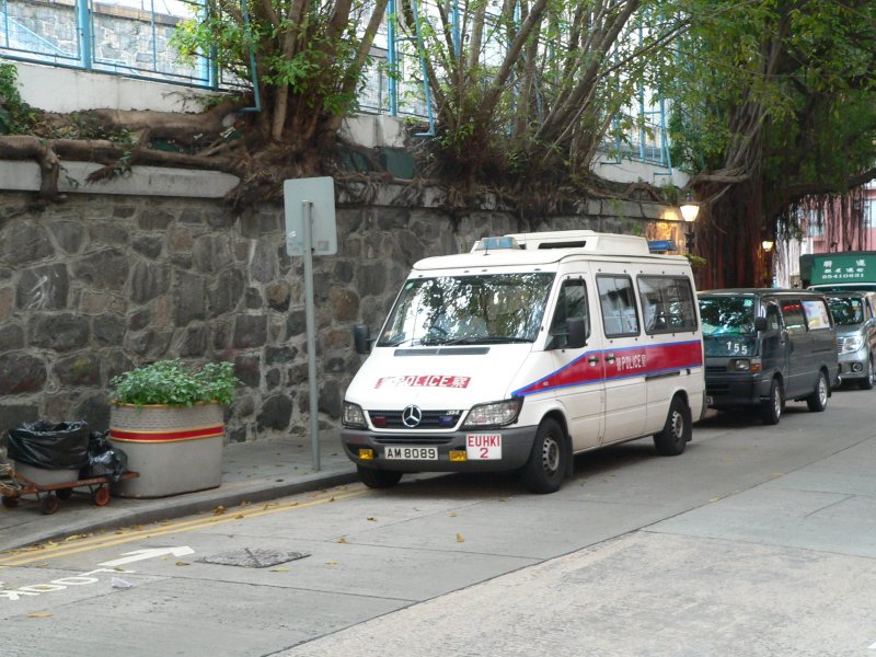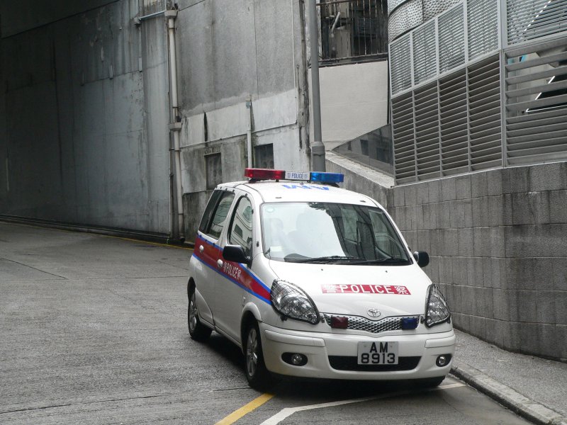 Ein Polizeiauto nahe dem Victoria Peak in Hongkong. Da Hongkong quasi wie ein eigenes Land ist, unterscheiden sich Polizeifahrzeuge und -uniformen von denen in China. 09/2007