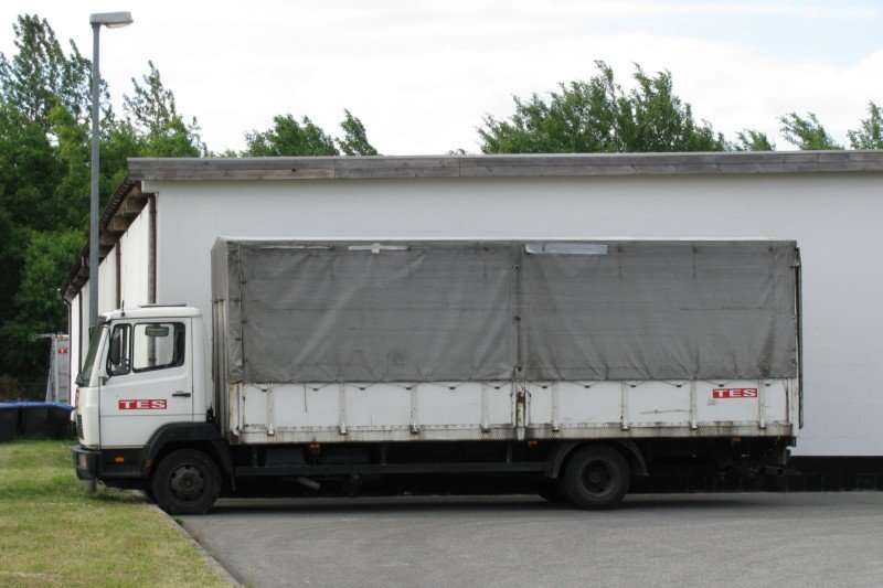 Lastkraftwagen MB .... (Pritsche-Plane) der TES, Schwerin, 30.08.2008