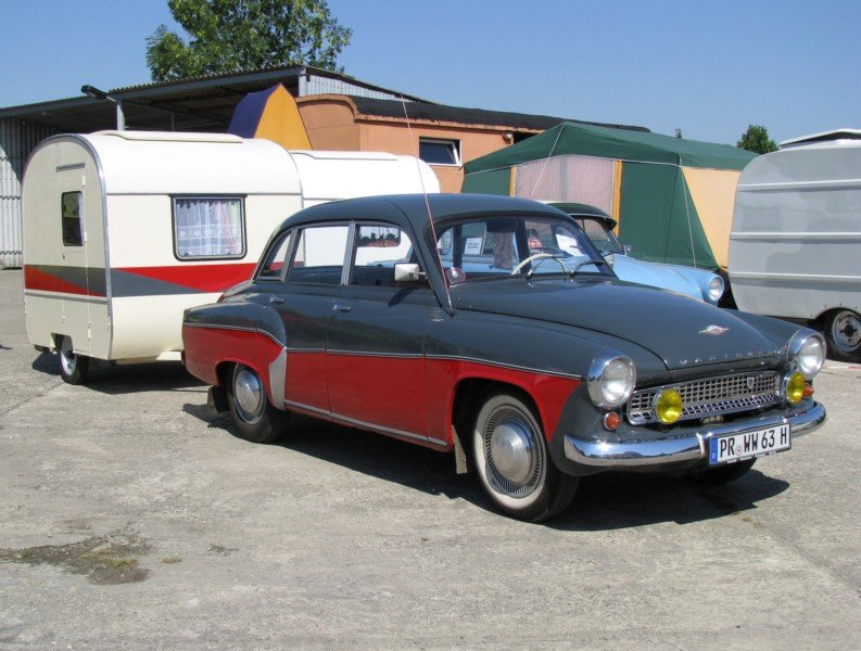 Pkw Wartburg 311 (Limosine) mit Campinganhänger aus dem Landkreis Prignitz, Beuster 27.07.2008