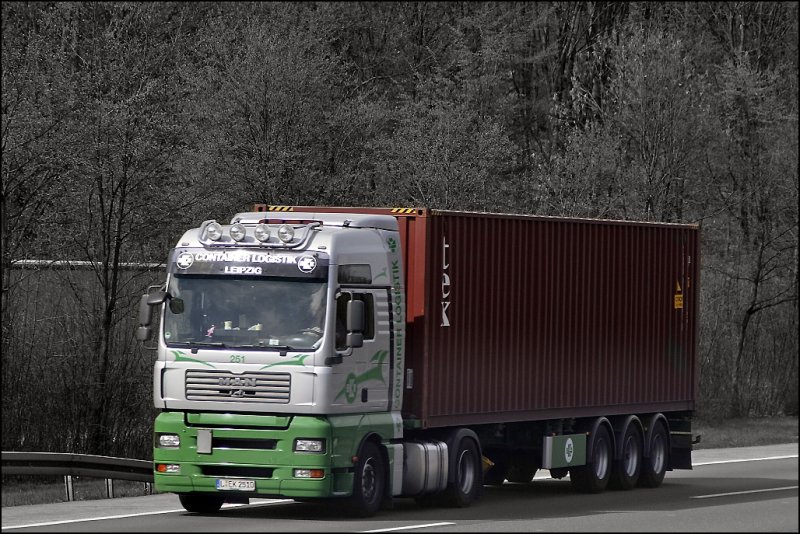 MAN TGA 18.440XXL der CONTAINER LOGISTIK LEIPZIG ist mit einem Überseecontainer bei Hagen-Süd unterwges.