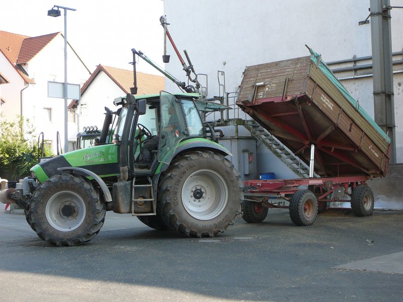 Deutz Agotron 150 bei der Entladung des Anhängers bei der Raiffeisenwarenzentrale in 36088 Hünfeld, August 2009