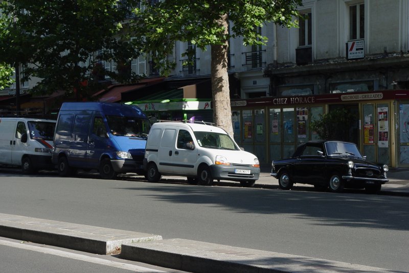 Wie klein der Kleine Autobianchi, den ich am 19.07.2009 in Paris gesehen habe, wirklich ist, sieht man erst im Vergleich mit anderen Fahrzeugen, wie hier mit dem Renault Kangaroo, der dahinter stand oder erst recht mit dem noch dahinter parkenden Kastenwagen.